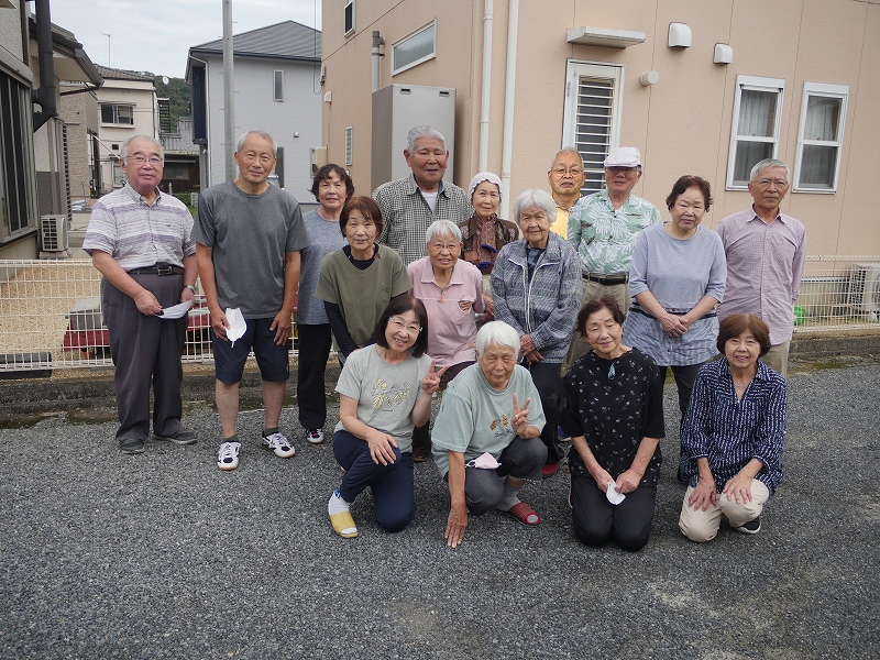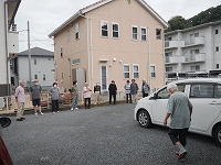 大規模地震が突如発生したという想定の下、憩の家で今年の2月に続いて本年2度目の防災・避難訓練が行われました。 憩の家に来られている方々は情報に基づいて、着の身着のままの姿で急いで屋外に避難しました。 無事に避難出来、点呼を行い全員の無事を確認して、ほっとした所で記録の為に記念撮影を行いました。 (全員怪我無く避難できて良かったです。 国の想定では30年以内に激甚災害が起きる確率が 70%~80% だそうです。現実に、 このような事態が起こらない事を祈るばかりです。) |