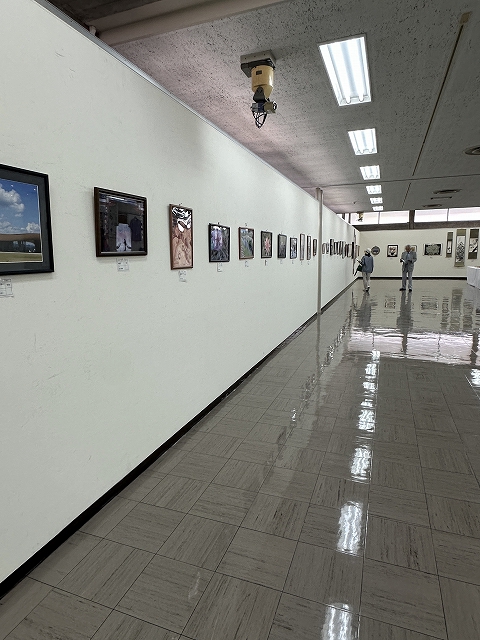 皆さんの作品が 横一列に展示 されています 今年は A3 サイズ で出品しましたので 見ごたえがあります |