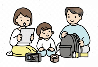 ![]() 家族の皆さんで日頃より防災リュックを確認 |