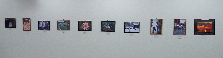 今年1回目の企画、パソコン同好会に参加されている方々から出品していただいた 写真を展示して、恒例となりつつある 「第六回写真展」 を開催しました。 今回のテーマも「 自由作品 」で、撮影日時・場所などの制約もなしとしました。 出品写真は一人一点とし、原画ファイルを頂いて、A4の大きさの フォト用紙に統一して、プリント、ラミネートをして展示しました。 そして、皆さんからの投票で優秀賞1点を選び、5月17日に表彰しました。 |