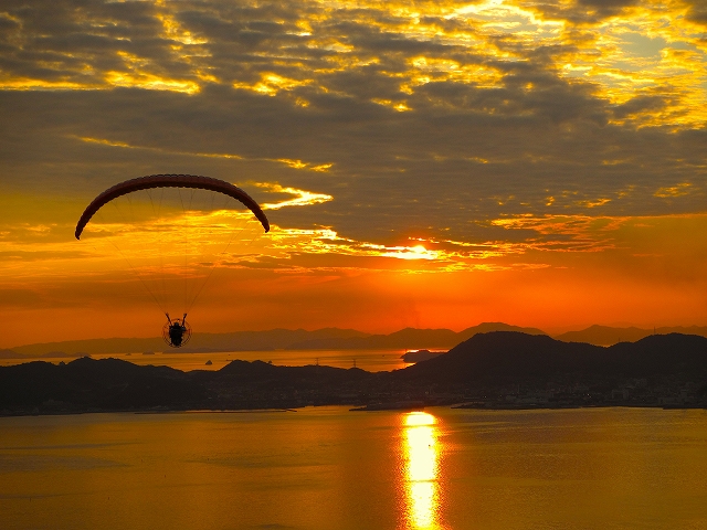 第七回写真展にて 「優秀賞」 に選ばれたのは テーマ 「 茜色の瀬戸内海 」 山本(典) さんの作品でした。 ( 児島・王子が岳の夕日に浮かぶ ハングライダーのシルエットですねエ ) おめでとうございます ![]() |